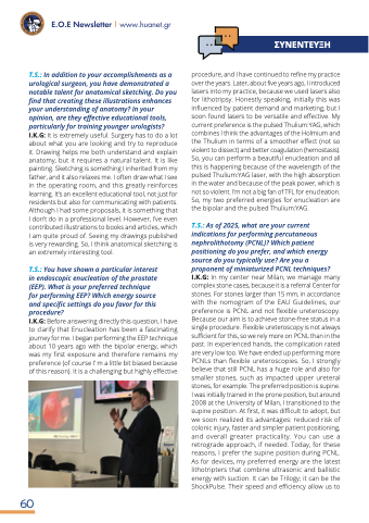 T.S.: In addition to your accomplishments as a urological surgeon, you have demonstrated a notable talent for anatomical sketching. Do you find that creating these illustrations enhances your understanding of anatomy? In your opinion, are they effective educational tools, particularly for training younger urologists? I.K.G: It is extremely useful. Surgery has to do a lot about what you are looking and try to reproduce it. Drawing helps me both understand and explain anatomy, but it requires a natural talent. It is like painting. Sketching is something I inherited from my father, and it also relaxes me. I often draw what I see in the operating room, and this greatly reinforces learning. It’s an excellent educational tool, not just for residents but also for communicating with patients. Although I had some proposals, it is something that I don’t do in a professional level. However, I’ve even contributed illustrations to books and articles, which I am quite proud of. Seeing my drawings published is very rewarding. So, I think anatomical sketching is an extremely interesting tool.